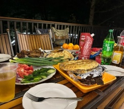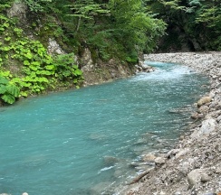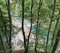 Очень красивое место для отдыха семьей. Красоту природы не возможно описать. Горную реку с такой кристально чистой водой голубого оттенка увидели впервые. Домики удобные комфортные, все что нужно для отдыха имеется. Есть так же ресторан с более чем адекватными ценами и вкусной кухней, отдельное спасибо поварам👍🏼. Дорога проходит через колоритное уютное селение с красивыми дворами. На обратном пути приобрели по дороге мед в сотах 💪🏼. Вообщем рекомендую всем кто хочет спокойно отдохнуть в красивом месте.