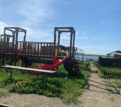 Спасибо за хороший отдых Дмитрию и Екатерине🤩 На территории есть все необходимое для отдыха: летняя кухня со всей необходимой техникой и посудой, мангальная зона, беседка с бильярдом и музыкой, детская площадка с качелями и горками, игровые автоматы для детей, душевые кабинки, баня. Есть пирс с лежаками, катамаранами, сапами. Кемпинг на берегу пресного озера. До соленого минут 10 ходьбы.