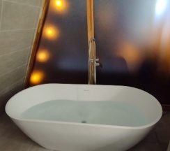 Отдыхала с 7 по 10 июня 2024 г. Очень понравилось. Большой бассейн с тёплой водой... было просто спасением, т.к. каспийского море в эти даты цвело и имело неприятный запах, купались только в бассейне до 23 часов. Домик а-фрейм шикарный со всеми удобствами, с современной мебелью и техникой. Отзывчивый персонал. До набережной и пляжа 10 минут пешком