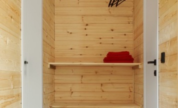 В домиках есть полноценная маленькая ванна! Это очень радует после убогих душевых кабин. Теплый пол - зимой комфортно.
