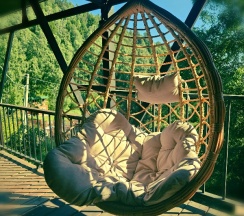 Зона отдыха с уютными качелями на веранде, заставляет уединиться со своими мысли в полной тишине.
