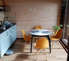 прекрасный домик, всё очень красиво, есть всё, что нужно для проживания до 4 человек (двуспальный диван и двуспальная кровать в отдельных комнатах)