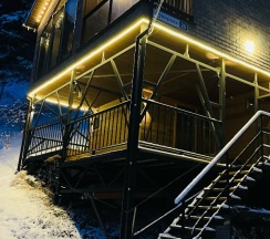 хозяин отзывчивый, помогает с различными мелочами, сам дом очень приятный, чистый и симпатичный и днём, и вечером (подсветка)
