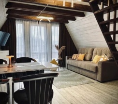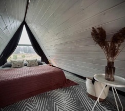 Шикарное место для отдыха. Уютный домик в котором есть все необходимое для отдыха. Жаркая банька, тоже в стиле а-фрейм, очень красивая и необычная. Отдельное удовольствие - это банный чан на свежем воздухе. Особый кайф в холодную погоду окунуться в теплую водичку. Ухоженная территория, вокруг молодой лес, тишина и спокойствие, полный релакс. Приятные хозяева, которые все делают для Вашего комфортного отдыха. Вернемся к вам еще не один раз. Большое спасибо за отдых, остались очень довольны