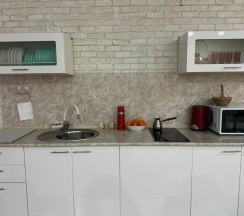 - Полностью оборудованная кухня, совмещённая с гостиной.