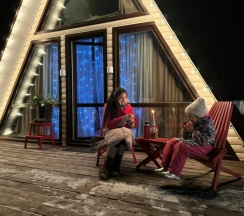 Очень хорошее место понравилось все. Уютные домики а-фрейм, банька. Дети в восторге будем приезжать . Воздух свежий, везде чисто, персонал вежливый