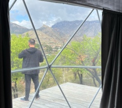Недавно отдыхали семьей в этом интересном глэмпинге, брали 3-местное размещение комфорт. Это шикарно! Природа тихая и уединенная, абрикосовый сад, никакой суеты вокруг, чарующий вид на горы... в купольном доме все максимально благоустроено и удобно, есть даже крем для рук, ничего везти с собой не нужно. Отлично провели отпуск, большое вам спасибо!