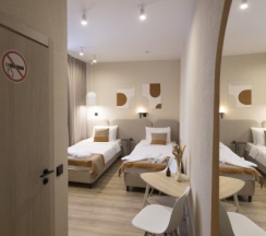 Достойное место, прекрасно выспались на мягких и чистых кроватях. Жаль, что заселение посуточное, но мы не пожалели такой комфорт того стоил.