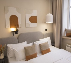 Отличный отель . Маленький , но по домашнему уютный . Чистые номера , белоснежное постельное . Вежливый персонал . Можно заказать завтраки, купить напитки, сладкое , сувениры. Нам очень понравилось еще и тем , что вокзалы в шаговой доступности , да и до центра тоже близко. Обязательно , если будем путешествовать этой дорогой , поселимся только тут .