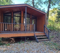 Очень красивое место для отдыха! Все новенькое чистое приятное! Природа вокруг радует глаз, заповедная зона! Есть чем заняться детям в веревочном парке, ребенок в восторге! Так же есть купель в большом домике!