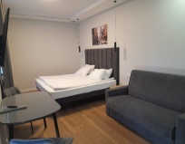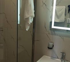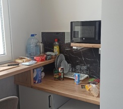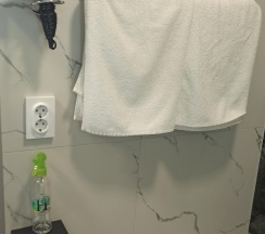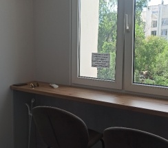 Заселили в 7-ой номер, идеально чистый, всё заявленное было в наличии. Окно на южную сторону, шторы Блэк аут отличное решение для отдыха днём. Рядом с кроватью над столиком розетка и выключатели освещения. Матрас очень удобный, средней жесткости, не проваливался, явно Аскона. Очень удобно, что в номере кроме чайника и холодильника, есть микроволновка. Можно не только разогреть, но и приготовить (имеется небольшая стеклянная кастрюля, нож, разделочная доска, вилки, тарелки).