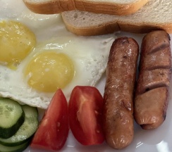 Администратор приветливый, старается! Завтрак готовят к удобному времени, в рамках времени завтрака, 2 вида на выбор (блинчики с творогом или блинчики с мясом со сметаной), кофе растворимый или чай. Есть молотый за отдельную плату, со сливками и без. Одноразовый шампунь и гель в номере. Нам понравилось, приедем ещё!