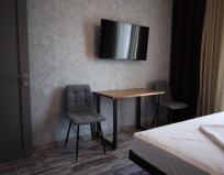 Стильное оформление номера и всего отеля. В номере все необходимое, от фена и мини-холодильника до сплит-системы и большого телевизора. Очень чисто. Сантехника в идеальном состоянии. Куча вариантов подсветки, на любой вкус. Неплохая шумоизоляция. По крайней мере разговоров из-за стенки не слышно. Очень удобный матрас!
