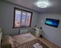 Супер гостевой дом! Всё новое, сделано с умом. Вечером можно посмотреть фильм в кинотеатре под открытым небом, покушать можно в кафе чуть ниже гостевого дома, вкусно. Мы отоспались так, что захотелось забрать кровать с собой! Вид из окон на горы! Мы в восторге! Из минусов только: часть дороги до дома совсем типа грунтовки, местами камни, но на груженом седане тихонько мы проехали!