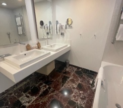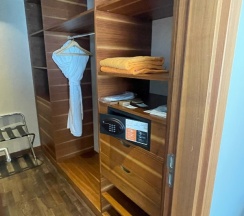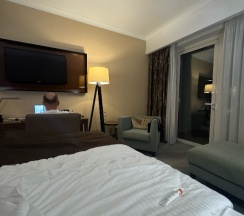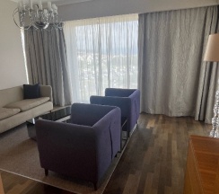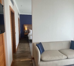 Хороший сетевой отель. Адекватный подъезд для такси для выгрузки-загрузки пассажиров. Прекрасные завтраки. У нас был люкс с видом на море. В номере было чисто, комфортно, все нужное для проживания присутствовало: холодильник, мыльно-рыльные, тапочки, чай, вода в бутылочках, гладилка с утюгом, сушилка, прекрасная просторная терраса. На территории есть два бассейна: снаружи и внутри. Стабильный вай-фай. Персонал предупредительный и вежливый. Приятные мелочи в виде маленьких шоколадок. Есть трансфер (входящий в проживание) до пляжа и от пляжа.