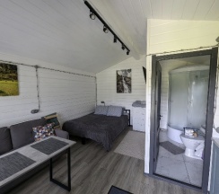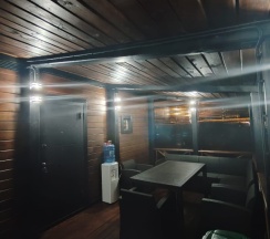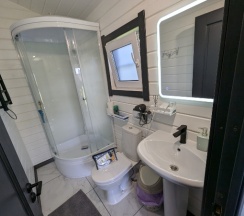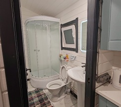 Отдыхали в двухместном домике. В самом домике есть всё, что нужно, как будто бы все мелочи учтены - это было очень приятно. Мангальная зона также оборудована всем необходимым для жарки (решетки, шпажки, разделочные доски, раковина и т.д.). Вся территория чистая, ухоженная, видно, что относятся с заботой. Что касаемо бани, мы брали баню с банным чаном два раза по 4 часа (после первого раза сразу поняли, что не уедем без повторного посещения этой бани). В бане всё чистенько, очень приятно находится было.