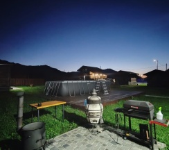 Понравилось всё, нет за забором шумных соседей и строений, красивый вид, есть стоянка, дали пульт от ворот на время отдыха, всё новенькое, рекомендую взять баню, рядом горячий чан и ещё один небольшой бассейн 4х2х1, туалет при бане удивил, не у каждого в квартире так чисто и красиво.