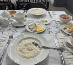 Мы в восторге от вашего сервиса , вы огромные молодцы! Передали атмосферу и окружили заботой ! Безумно трепетное отношение, персонал - душеньки . Это именно те люди , которые должны встречать гостей города ! Наталья и Ольга работали в дни нашего пребывания , спасибо им огромное! Очень вкусный завтрак : кашка , масло сливочное , хлеб , мясо , омлет , чай , компот , сыр .