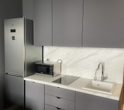 🔹Полностью оборудованная кухня, с удобным столом в виде барной стойки, мягкими стульями