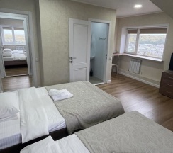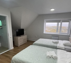 Прекрасный мини отель, просто с шикарным видом на город, очень уютно и комфортно, также при отеле есть уютный ресторанчик, в котором можно вкусно и сытно покушать, персонал адекватный и внимательный, в номерах в принципе есть всё для комфортного проживания, кто будет думать где остановиться или вкусно поесть, советую заглянуть в данное заведение.