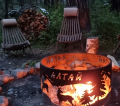 За территорией следят хорошо, везде выдержан фирменный стиль, есть где прогуляться, костровище, мини «смотровая» на Катунь, мини-ферма с барашками.