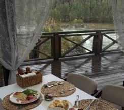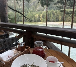 Прекрасное место! Находится на берегу Катуни, с красивой панорамной террасой. На территории есть ресторан, где мы отлично поужинали. Утром нас ждал завтрак в формате «шведского стола» — вкусный, сытный и с большим разнообразием блюд.