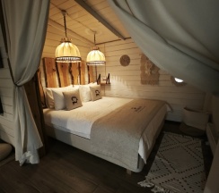 Идеальное место для спокойного отдыха! Останавливались в домике категории Комфорт + - очень уютно, красиво, а тёплый пол - отдельная любовь! Отдельно хочу похвалить завтраки в ресторане "Солома", выбор блюд достойный, а сами продукты хорошего качества! Все очень вкусно!