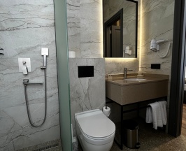 Очень красивый отель. Дизайн интерьера и атмосфера просто восторг. В номере: чайный набор, холодильник, халаты, все ванные принадлежности. Душевая без порожка, поэтому вода разливается по полу сан узла. Отель стоит на оживленной улице, поэтому слышно шум дороги. Рядом можно пройтись прогуляться по центру города. Минус звезда за завтрак: пришли к назначенному времени и ждали ещё 20 минут еду. Еда не вкусная, кофе настолько разбавлен что похож на некрепкий чай, сырники очень сладкие, в блины что-то завернуто типа засахаренных фруктов. Если бы была возможность отказаться от завтрака и сходить позавтракать в другое место за эти деньги(((