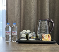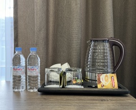 В каждом номере ванная комната с душевой кабиной и косметикой. Телевизор, интерактивное телевидение , шторы блэкаут, сейф, утюг, гладильные принадлежности(по запросу), мини-холодильник, чайная станция. Wi-Fi. Дополнительное место в номер устанавливается по возможности и только по предварительному запросу. Завтрак включен