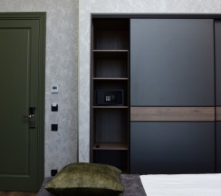 Просторный номер полулюкс с 1 двухспальной кроватью 160*200 и уютным диваном. В номере также есть ванная комната с душевой кабиной с тропическим душем и косметикой. Также в услуги номера входят: телевизор, интерактивное телевидение , шторы блэкаут, сейф, утюг, гладильные принадлежности(по запросу), мини-холодильник, чайная станция, рожок и губка для обуви, Wi-Fi. Дополнительное место в номер устанавливается по возможности и только по предварительному запросу. Завтрак включен