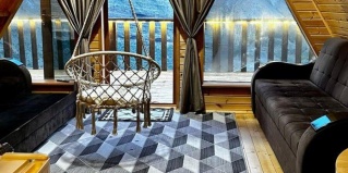 Для размещения представлены 2 домика в стиле A-Frame. Комфортная вместимость - до 4 человек, максимальная до 6. Спальные места: двуспальная кровать, 2 раскладных дивана. Для комфортного проживания доступны: WI-FI и TV, фен. В кухонной зоне: варочная панель, СВЧ-печь, чайник, холодильник, посуда и столовые приборы. Совмещенный санузел с душевой кабиной. Постельное белье и полотенца предоставляются. Домики имеют террасу с прекрасным видом на реку и зип лайн.