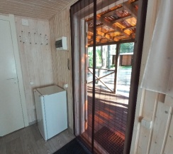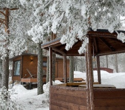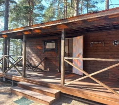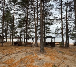 База расположена в сосновом лесу на берегу озера. На базе тихо и спокойно. Воздух чистый, рядом вода, из окна красивый вид. В стоимость домика включены завтраки, но они очень легкие - два сэндвича, яичница и овощи. В домике нет плитки, только микроволновка, это минус. Также нет мойки для посуды, а раковина в санузле очень маленькая, мыть посуду неудобно. Из развлечений - сапы, велосипеды, баня и чан. Можно немного порыбачить или пособирать ягоды. Но рядом ничего интересного нет, в поселке посмотреть нечего, кроме подвесного моста в аварийном состоянии и деревянной церкви на горке. В местном магазине нет даже мороженого, что очень удивило и расстроило, так как было жарко. Недалеко от базы есть небольшая частная сыроварня, где можно продегустировать сыры и прикупить что-то. В целом, если не считать некоторых минусов, база вполне подходит для спокойного отдоха.