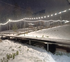 Вид на каму потрясающий,особенно утром на следующий день,когда выходило солнце и мягко падал снег. Погода не омрачила наш отдых,с собой у нас были игры, подруга провела нам интересный мк,танцы и разговоры по душам. В домике есть всё необходимое,тёплые полы. Плита,где мы пожарили чевапчичи. Тк мангальная зона только для сухой погоды. Но нас это не расстроило. Есть чан у каждого домика. Строиться банька.