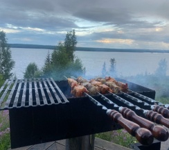 Работает повар пожарил нам вкусно мясо ,рыбу овощи ,что очень удобно .Спасибо за теплый прием ,обязательно вернемся снова🥸