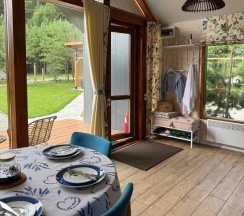Невероятно приятное место! Домик чистый, уютный, пахнет деревом- всё очень аккуратно. Мангальная зона порадовала- всё идеально чисто. А фурако подарило настоящее расслабление после прогулки. Хотелось остаться подольше.