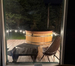 Классное место для отдыха и перезагрузки! Дом просторный, природа вокруг потрясающая, а вечером фурако – отдельное удовольствие. Единственное – показалось, что ступеньки у фурако скользкие после выхода из воды, я бы добавил коврик. И в ванной тоже пригодился бы – для безопасности