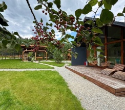 Отдыхали с подругами, всё прошло отлично. Домик уютный, внутри красиво, вечером пили вино — атмосфера прямо как на хорошем отдыхе. Всё очень понравилось!