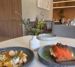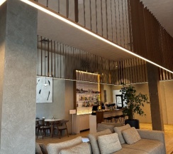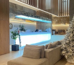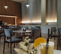 Отмечали свадьбу дочери 02.08.25 и это было очень впечатляюще. Уже при первой встрече Наталья Калиновская менеджер все объяснила, показала, стало ясно, что это именно то, что нужно нам. Банкетный зал находится на 8 этаже, у него свои раздевалка, туалеты, гримерные для артистов и даже кухня! Весь 8 этаж это по сути место проведения праздника, хочется отметить, что интерьер стильный, современный, нейтральный, можно задекорировать по разному,в зале высокие потолки, Но какой бы ни был зал и место, на банкетах главное это -еда. И вот тут отдельное спасибо отелю и ШЕФУ, к сожалению я не узнала его имя, за прекрасное угощение!!! Нас было 70 человек и все остались довольны, наши гости подходили к нам и отмечали качество и вкус блюд. Приятно, что учли все наши пожелания. При подготовке к свадьбе мы несколько раз заезжали в отель и каждый раз я что-то пробовала из меню ресторана, теперь это одно из моих любимых мест нашего города. Очень вкусно! Редко бывает, что понравилось всем и все, но команда отеля это сделала. Молодцы! Желаю вам дальнейшего процветания.