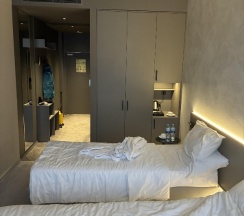 Отель выбирали, потому что по расположению больше всего подходило. Ожидания свои оправдал, номера чистые, вроде бы как совсем-совсем новый, уборка каждый день, в номере есть чайник, полотенца, халаты, кофемашина