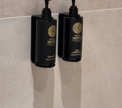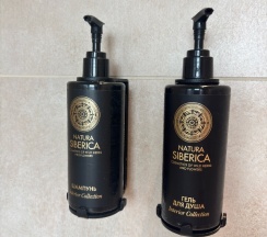 Фен и все прочие мыльные принадлежности в наличии. Приятно удивила Natura Siberica в ванных комнатах: жидкое мыло, шампунь, гель для душа.