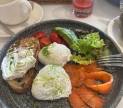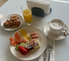 Завтрак не прям вау, но красная рыба была. И вкусные сырники тоже.