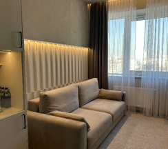 Подсветка в виде светодиодных лент по изголовью кровати, креплениям штор, зеркало в ванной, шкафы - топ) нам очень понравилось.