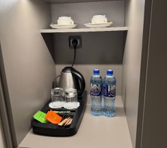 По сути номера чистые, не замызганные, уборка своевременна, в номере чайник, чай/кофе, сахар, вода, полотенца, халаты, вайфай