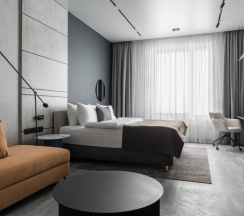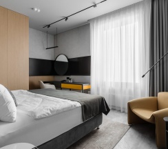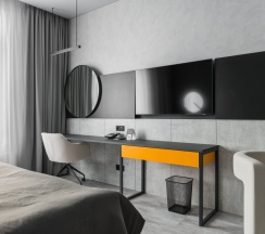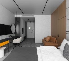 Номер категории Улучшенный Стандарт предлагает гостям повышенный уровень комфорта и удобства. Просторная комната оформлена в стиле эклектики, что создает неповторимую атмосферу уюта. Рабочая зона с письменным столом и эргономичным креслом позволяет продуктивно заниматься делами, а удобный диван подойдет как для отдыха, так и в качестве дополнительного спального места.