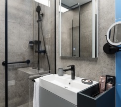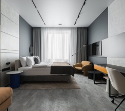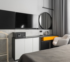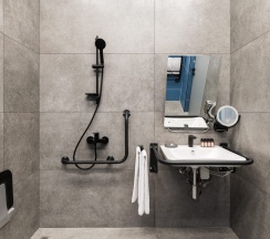 Доступное и безопасное пространство, адаптированное для маломобильных групп населения. Просторная комната спроектирована с учетом всех потребностей гостей с ограниченными возможностями. Ванная комната оснащена душем с поручнями, а широкие дверные проемы и отсутствие порогов позволяют свободно перемещаться по номеру. Специальные кнопки вызова персонала обеспечивают дополнительную безопасность и оперативную помощь при необходимости.