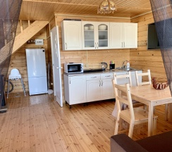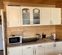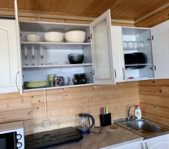В коттедже комфортные спальные места, собственная ванная комната и туалет. Кухня со всей посудой для приготовления и сервировки, новая высококачественная бытовая техника.