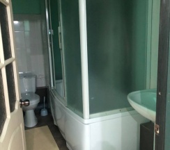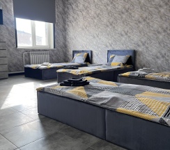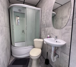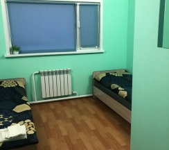Останавливались в этой гостинице 2 взрослых 2 детей, ночью заехали, нам предложили номер на четыре спальных места, с санузлом в номере, номер чистый с кухней, холодильник СВЧ плита электрочайник посуда, комплект полотенец каждому все новое чистое. Рекомендую.
