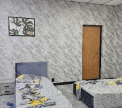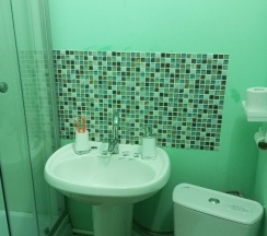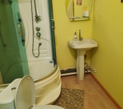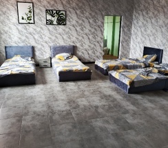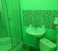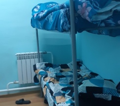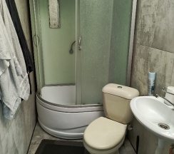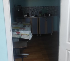 Останавливались в этой гостинице 2 взрослых 2 детей, ночью заехали, нам предложили номер на четыре спальных места, с санузлом в номере, номер чистый с кухней, холодильник СВЧ плита электрочайник посуда, комплект полотенец каждому все новое чистое. Рекомендую.