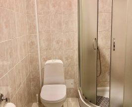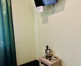 В номере 3 односпальных кровати, тумбочка , шкаф для одежды, телевизор, кондиционер. Ванная комната: душевая кабина, унитаз, раковина. Мыло, гель для душа, два полотенца.