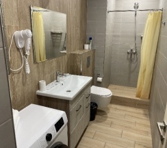 Отличный отлель. В действительности даже лучше чем на фотографиях. Есть абсолютно все для комфортного проживания. Хорошая новая мебель, удобная кровать, большой холодильник, варочная поверхность, микроволновка, чайник, сушилка, стиральная машина, теплый пол. Все очень чисто. Приятные мелочи: тапочки, халаты, разовые бритвы, зубные щетки, средство для мытья посуды и стирки вещей, сушилка, вода в бутылках, чай. Вкусный кофе из кофемашины бесплатно для гостей возле стойки администратора. Вежливый, приятный персонал. Хочется снова останавливаться в этом отеле.
